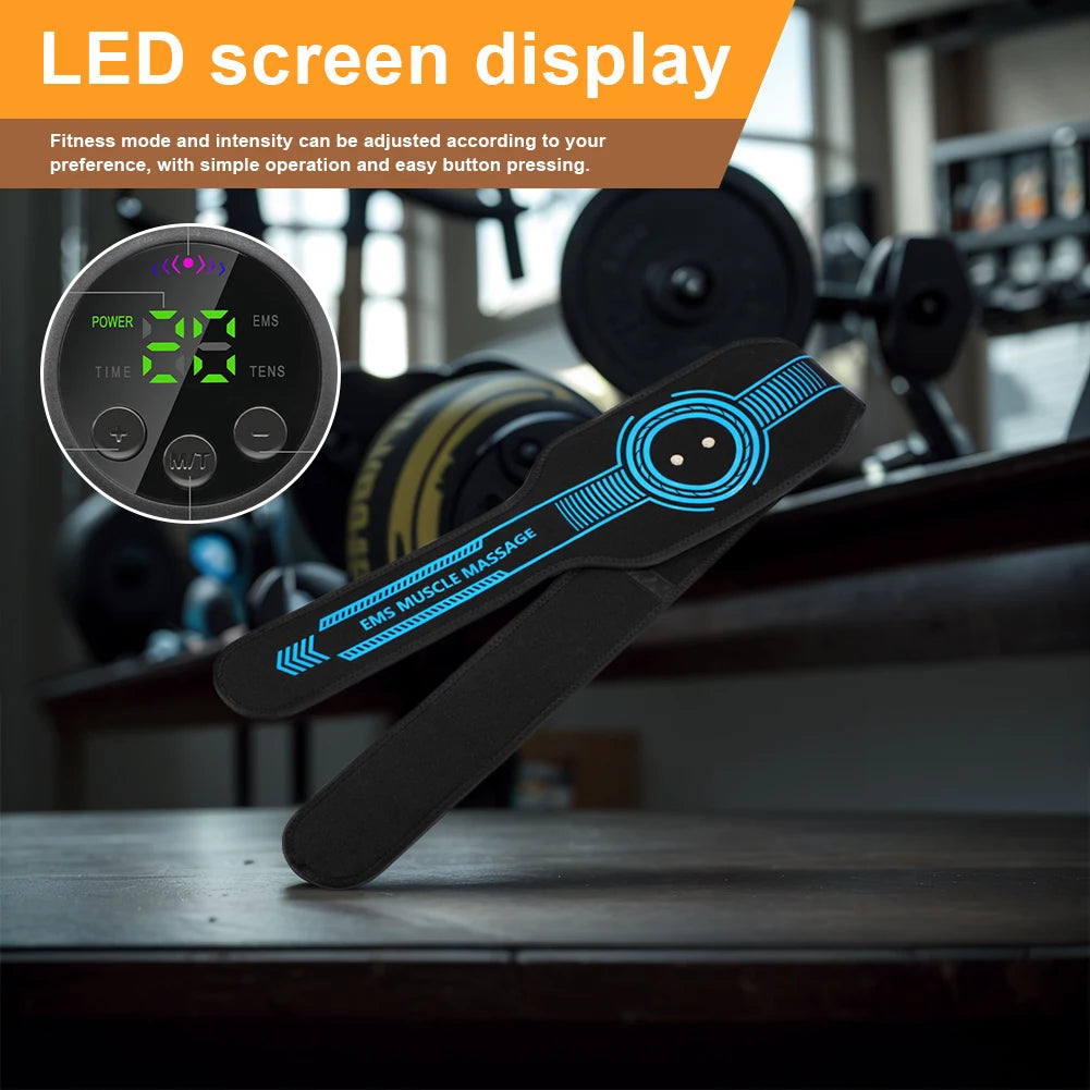EMS Muscle Stimulator USB Rechargeable Abdominal Training Belt Adjustable Electronic Muscle Toner LED Display for Body Shaping