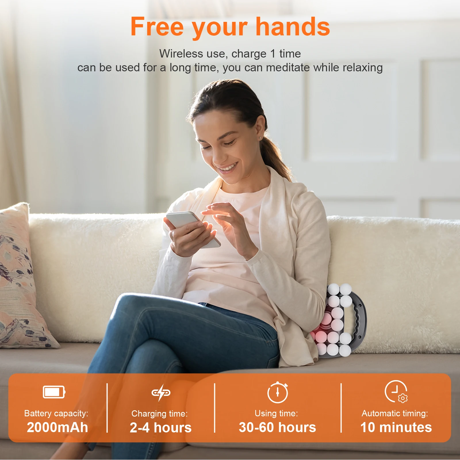 7. Free Your Hands. Wireless use, charge 1 time, can be used for a long time, you can meditate while relaxing.